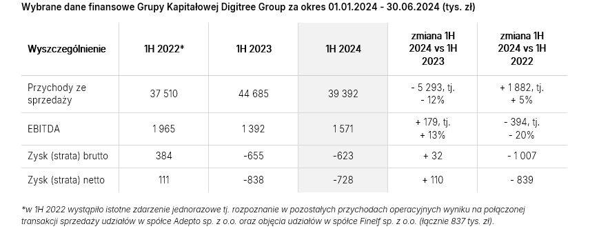 Wyniki Grupy Kapitałowej Digitree Group za I półrocze 2024 roku: wzrost EBITDA, zmniejszenie straty netto i stabilny rozwój