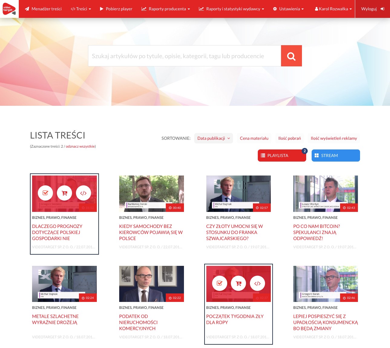 Pierwszym system jest system służący do wymiany treści. Do tworzenia sieci reklamy wideo angażujemy Producentów, którzy tworzą i dodają materiały wideo, oraz Wydawców, którzy dzięki swojemu portfolio serwisów mogą umieszczać pobrane treści z platformy na swoich stronach www. Cały system oparty jest o PHP, Symfony, MySQL, RabbitMQ, JS + jQuery, Angular i znajduje się na rozproszonej i skalowalnej infrastrukturze, która w łatwy sposób pozwala nam zwiększać zasoby w razie takiej potrzeby. Środowisko developerskie oparte jest o Dockera, w celu szybkiego i łatwego wdrożenia nowego programisty.